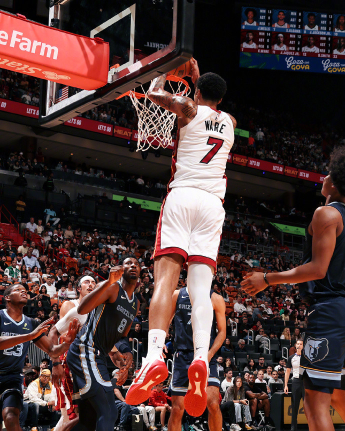 在今天的比赛中,双方都火力全开,灰熊首节就得到29分,接下来三节都得到至少35分,最终全场狂轰141分。热火虽然前三节也都得到超过30分,但是末节仅22分,单节净负17分,最终也不敌灰熊,无缘季前赛首胜。